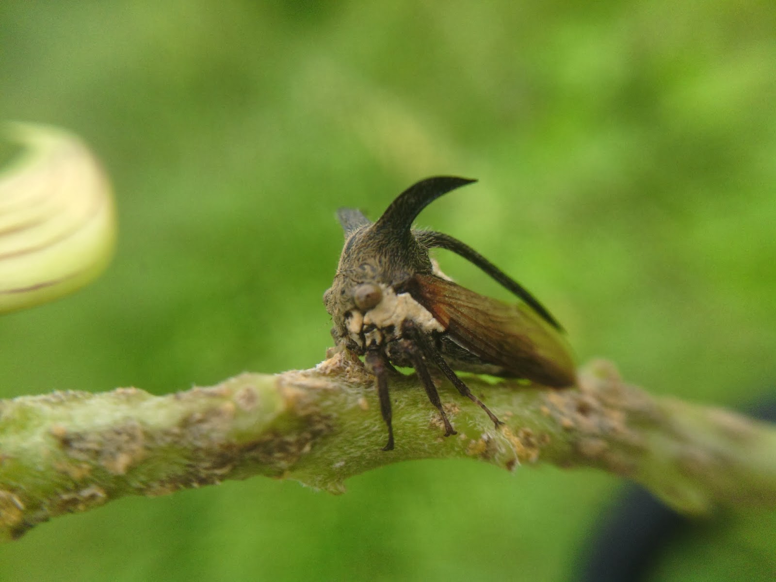 Disebuah dahan,kulihat sesosok hewan mungil dg bntuk yang unik. Kuarahkan senjata andalan ku Andromax i + lensa makro(copotan lensa kodak easy share) ke arah hewan itu. Satu,dua jepret..miss fokus. Over exposure,dan shaking (maklum tremor). Dr sekian jepretan,sampai memori hampir penuh,didapat gambar berikut. Belum sempurnah sih,masih miss di area sekitar mata dan dof yang nggak full ke seluruh badan. Sepulang hunting,ku edit (koreksi bright kontras saturasi dan cropping), beginilah hasilnya.